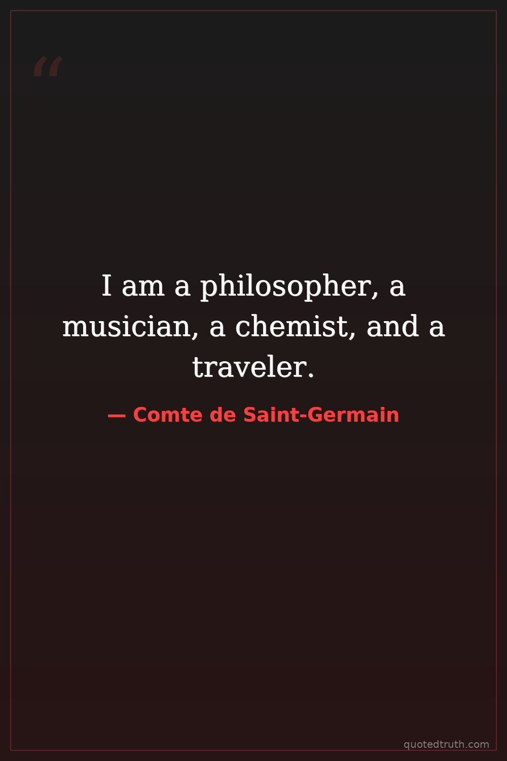 I am a philosopher, a musician, a chemist, and a traveler.