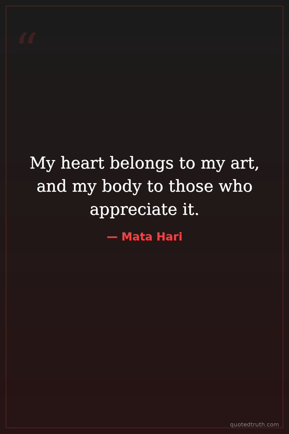 My heart belongs to my art, and my body to those who appreciate it.