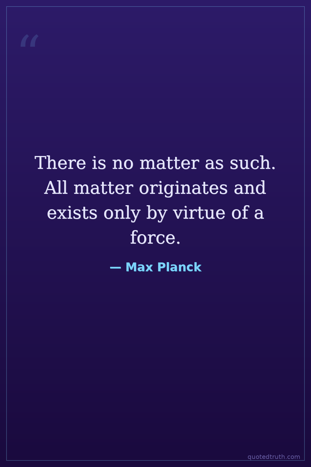 There is no matter as such. All matter originates and exists only by virtue of a force.