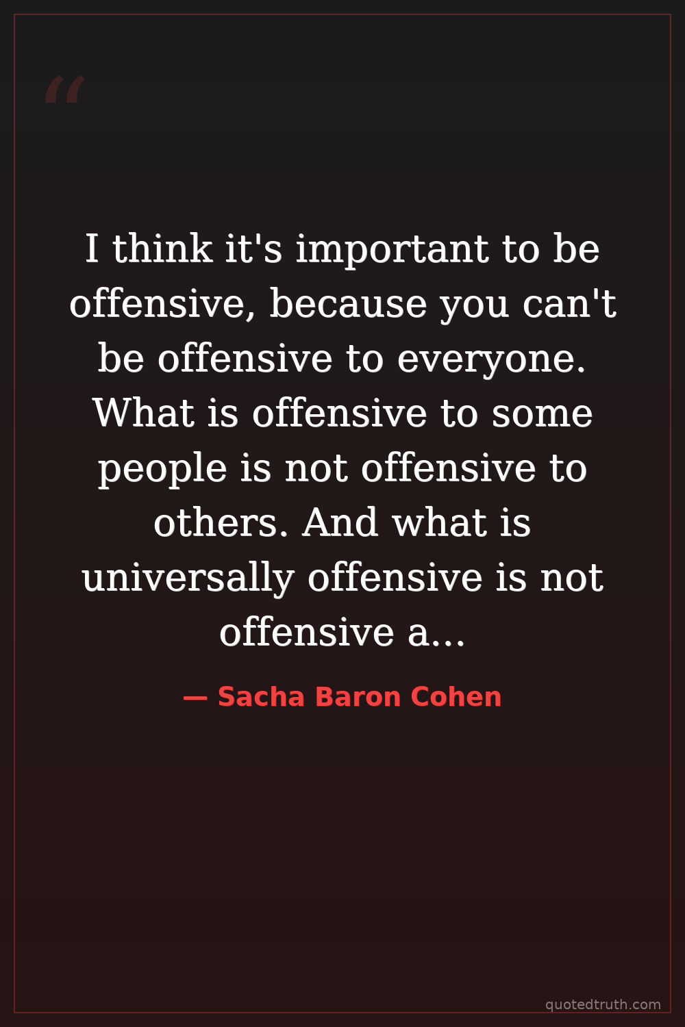 I think it's important to be offensive, because you can't be offensive to everyone. What is offensive to some people is not offensive to others. And what is universally offensive is not offensive at all.