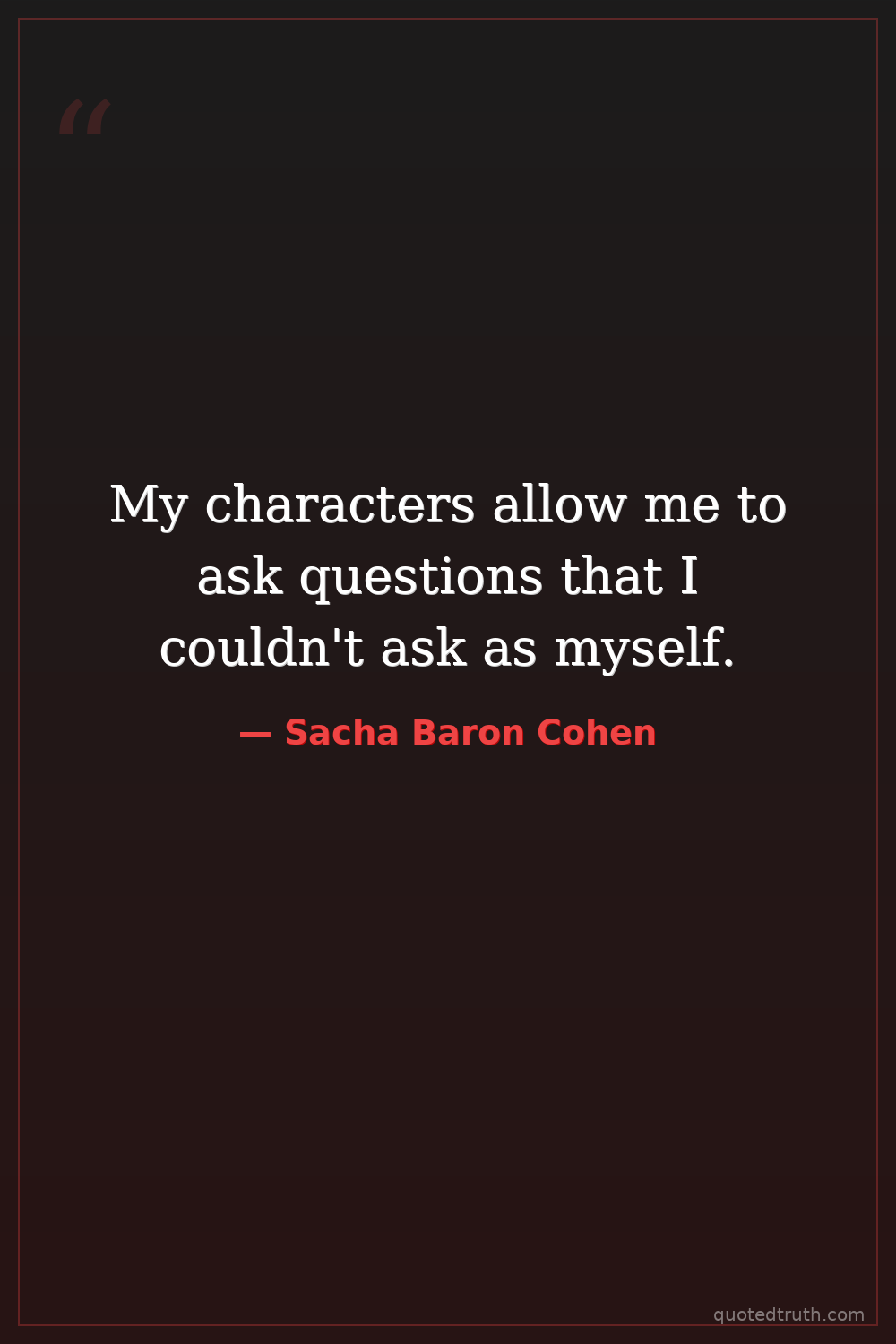 My characters allow me to ask questions that I couldn't ask as myself.