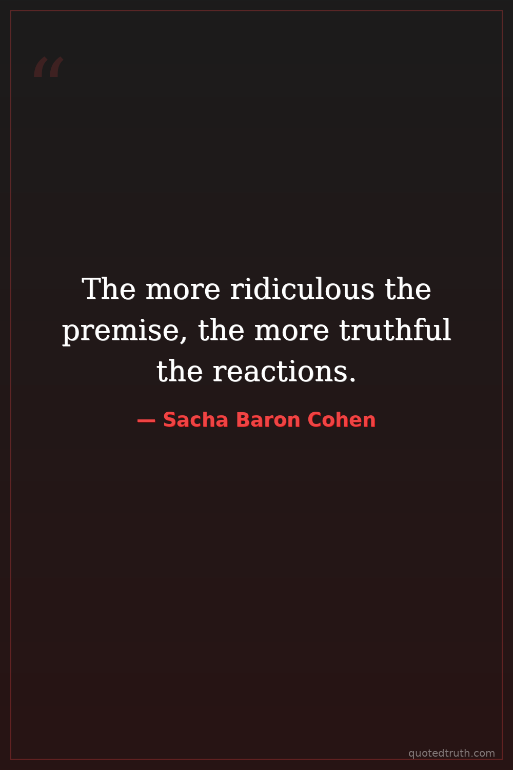 "I don't think I've ever done a character that is a good guy. I mean, Borat is not a good guy. Ali G is not a good guy. Bruno is not a good guy."