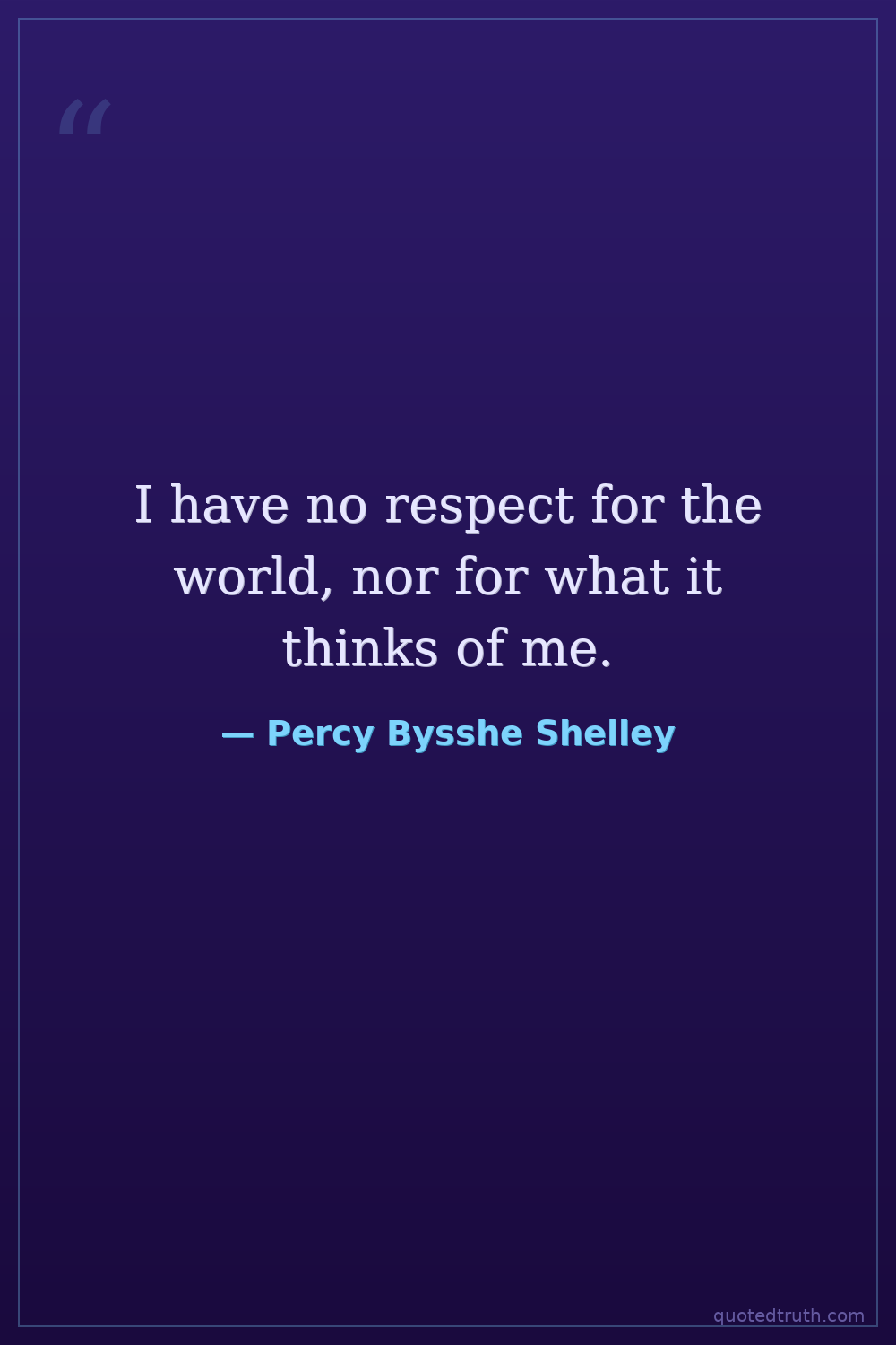 I have no respect for the world, nor for what it thinks of me.