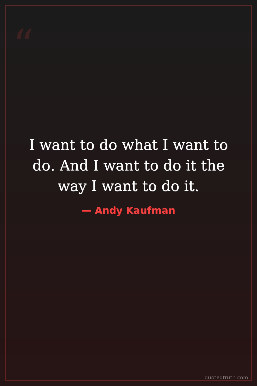 I want to do what I want to do. And I want to do it the way I want to do it.