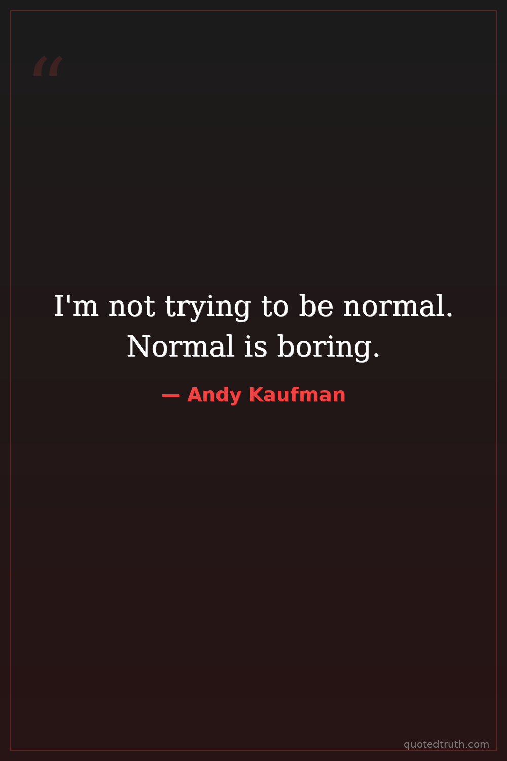 I'm not trying to be normal. Normal is boring.