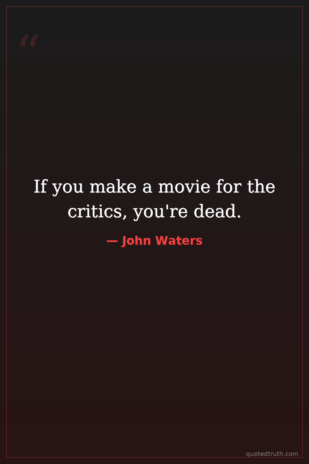 If you make a movie for the critics, you're dead.