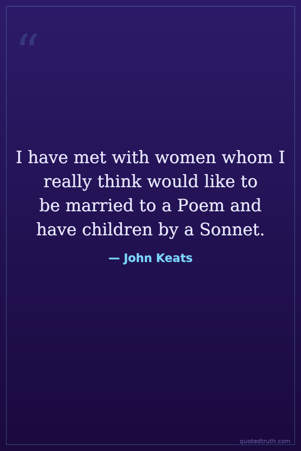 I have met with women whom I really think would like to be married to a Poem and have children by a Sonnet.