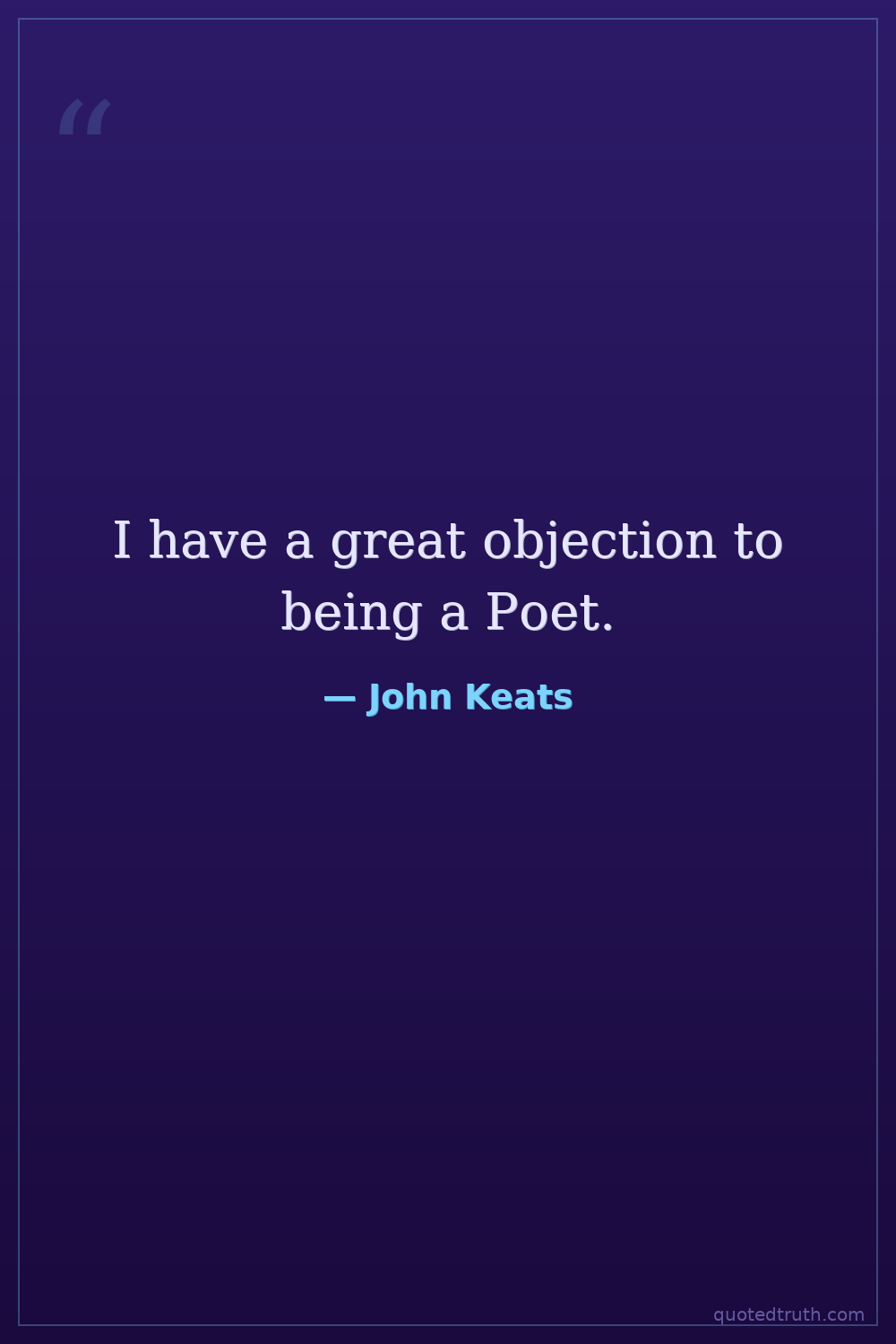 I have a great objection to being a Poet.