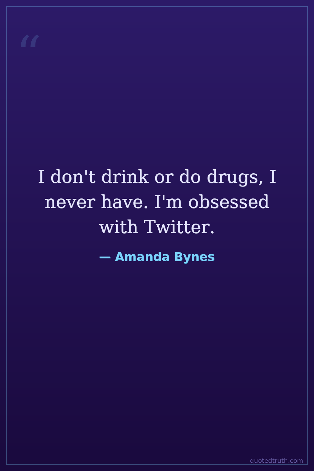 I don't drink or do drugs, I never have. I'm obsessed with Twitter.