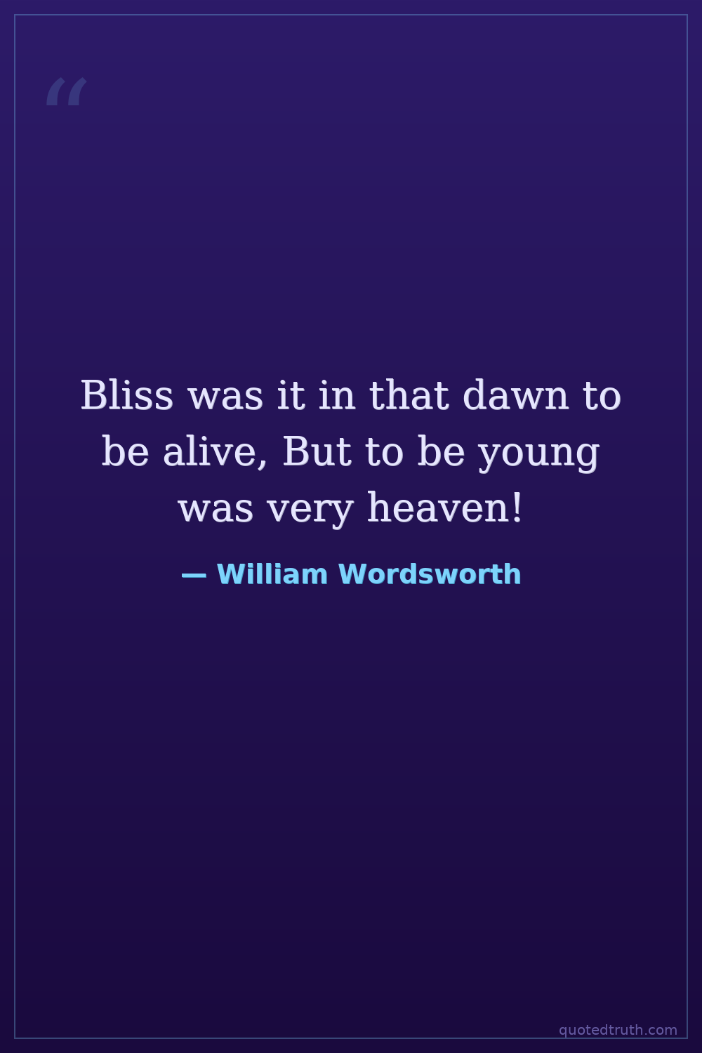 Bliss was it in that dawn to be alive, But to be young was very heaven!