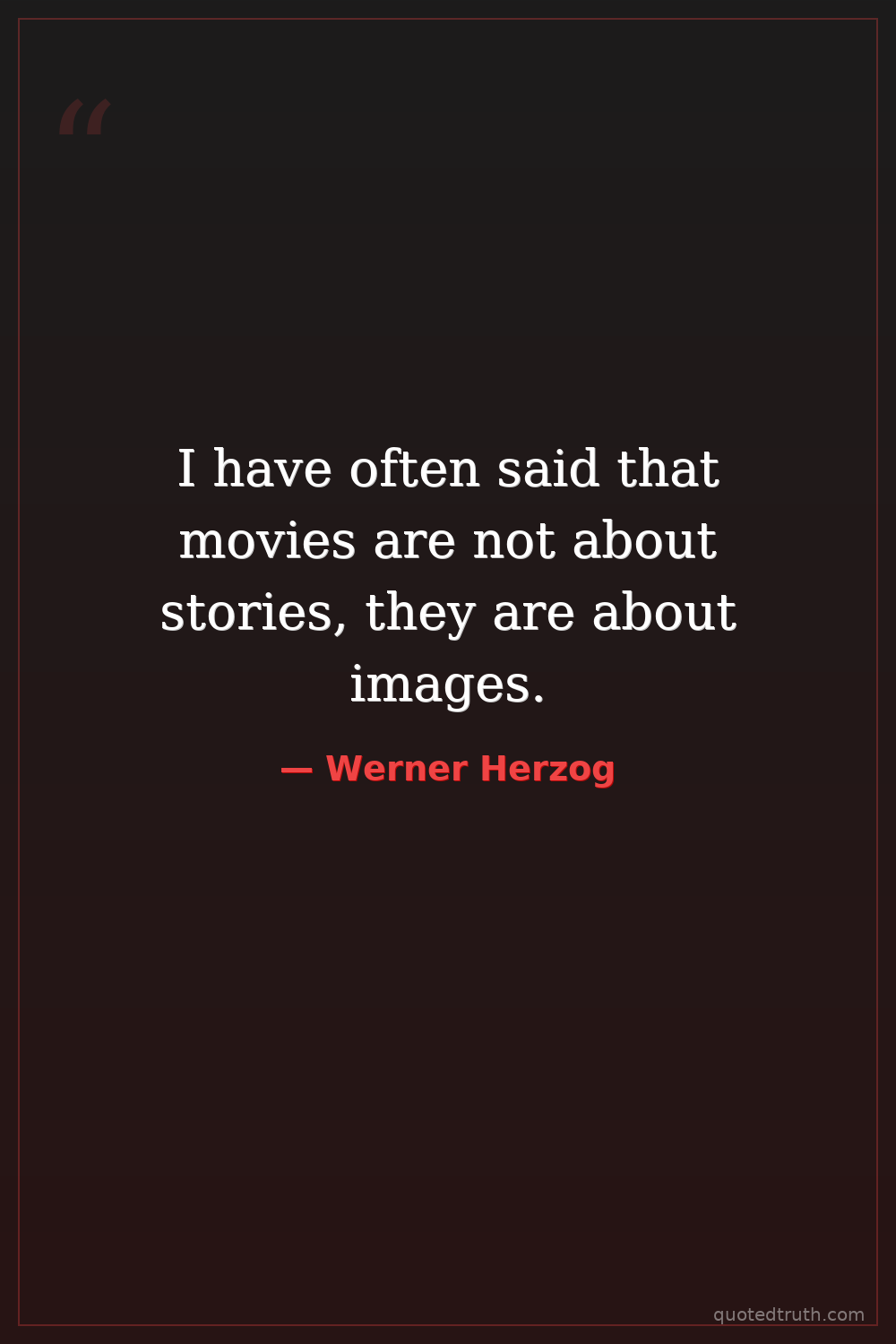 I have often said that movies are not about stories, they are about images.