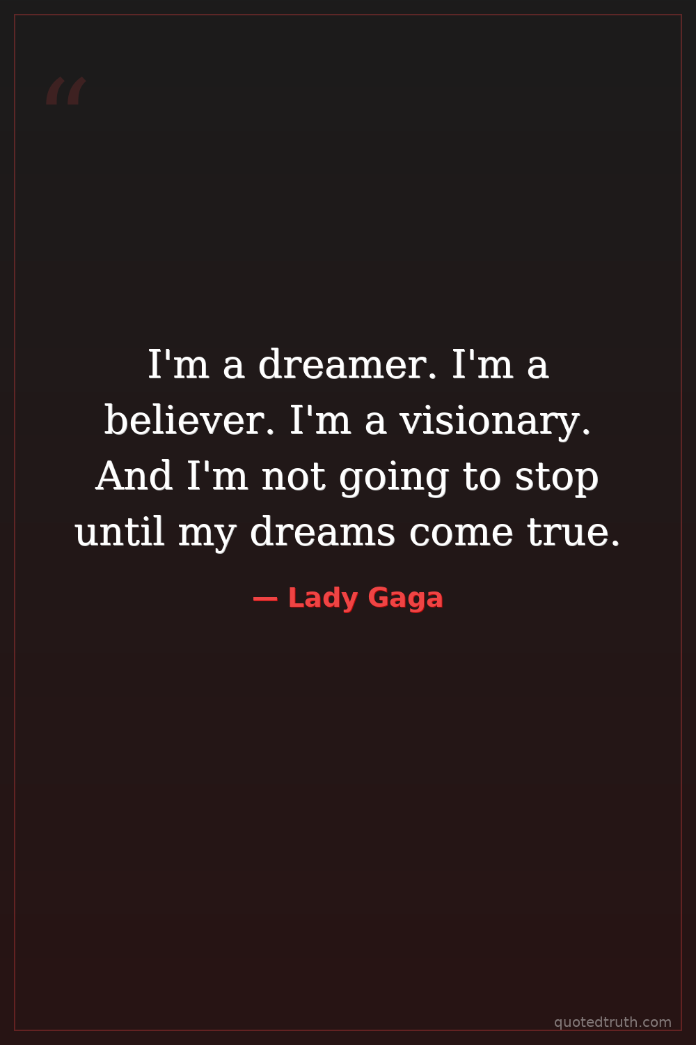 I'm a dreamer. I'm a believer. I'm a visionary. And I'm not going to stop until my dreams come true.