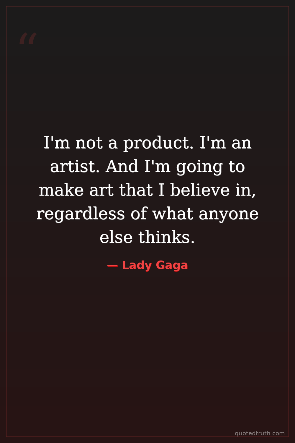 I'm not a product. I'm an artist. And I'm going to make art that I believe in, regardless of what anyone else thinks.