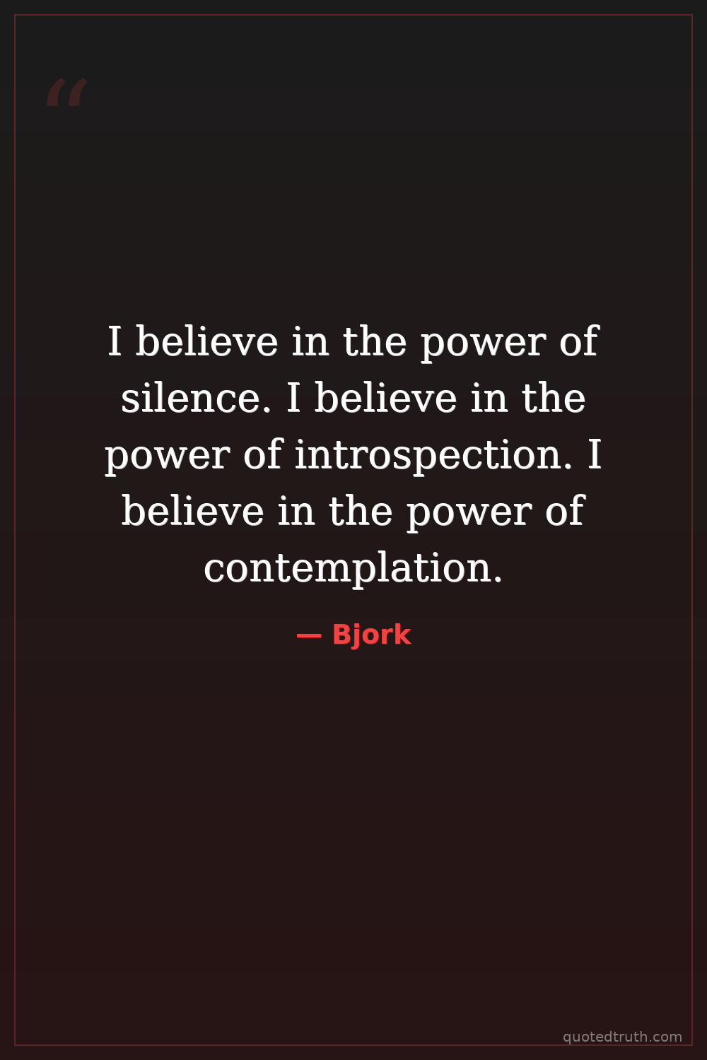 I believe in the power of silence. I believe in the power of introspection. I believe in the power of contemplation.