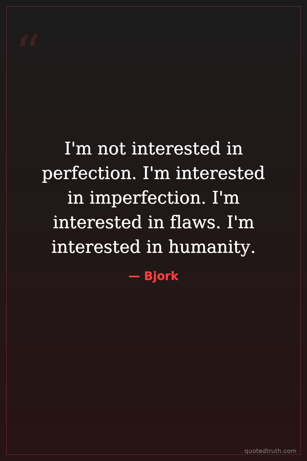 I'm not interested in perfection. I'm interested in imperfection. I'm interested in flaws. I'm interested in humanity.