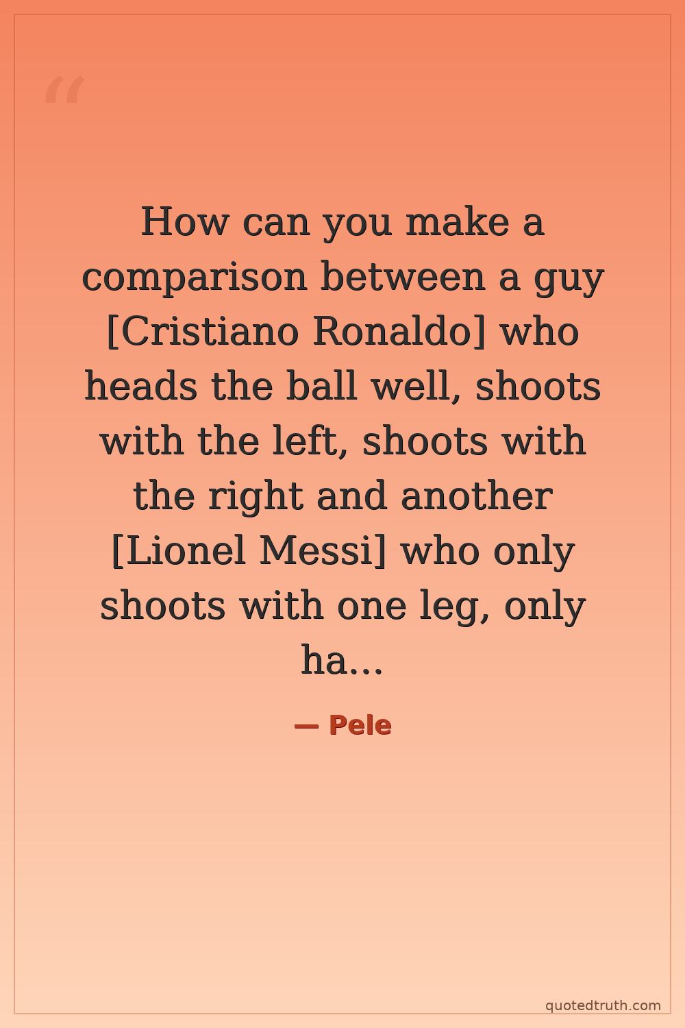 How can you make a comparison between a guy [Cristiano Ronaldo] who heads the ball well, shoots with the left, shoots with the right and another [Lionel Messi] who only shoots with one leg, only has one skill and doesn't head the ball well? How can you compare? To compare with Pele, it has to be someone who shoots well with the left, shoots well with the right and scores headers.