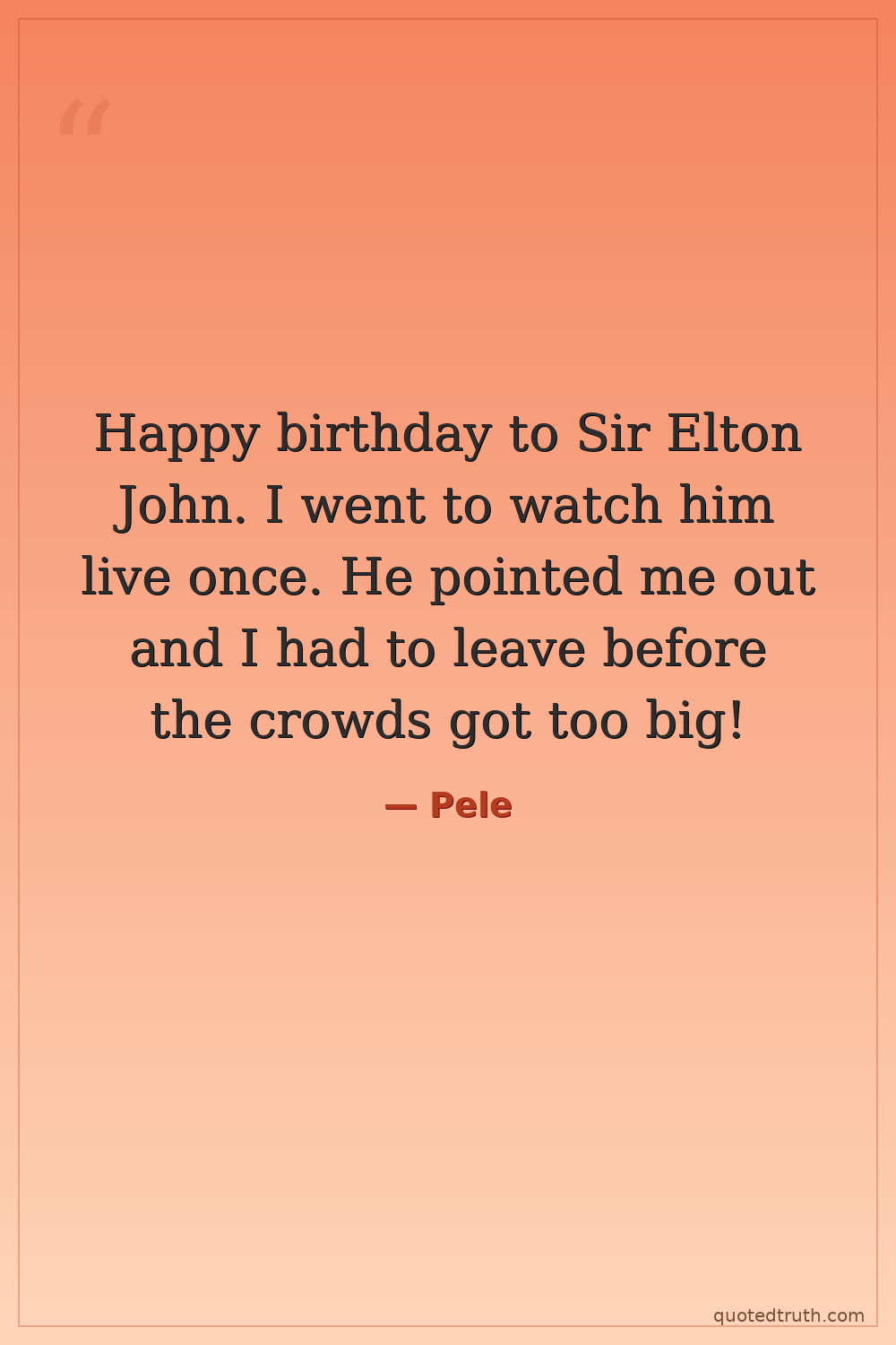 Happy birthday to Sir Elton John. I went to watch him live once. He pointed me out and I had to leave before the crowds got too big!