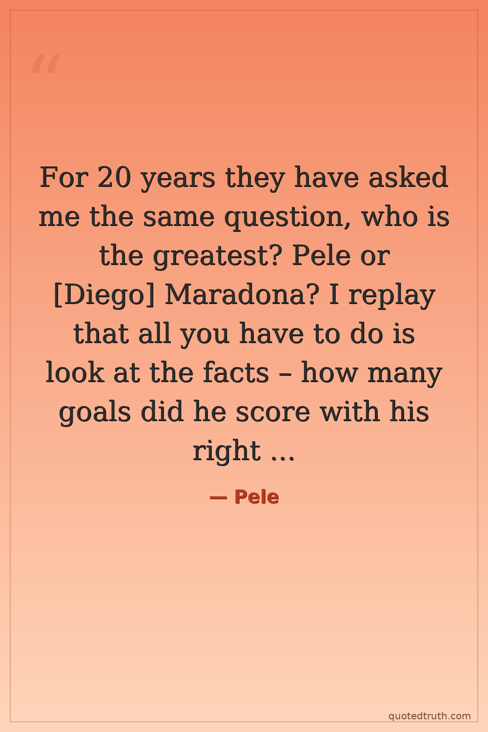 For 20 years they have asked me the same question, who is the greatest? Pele or [Diego] Maradona? I replay that all you have to do is look at the facts – how many goals did he score with his right foot or with his head?