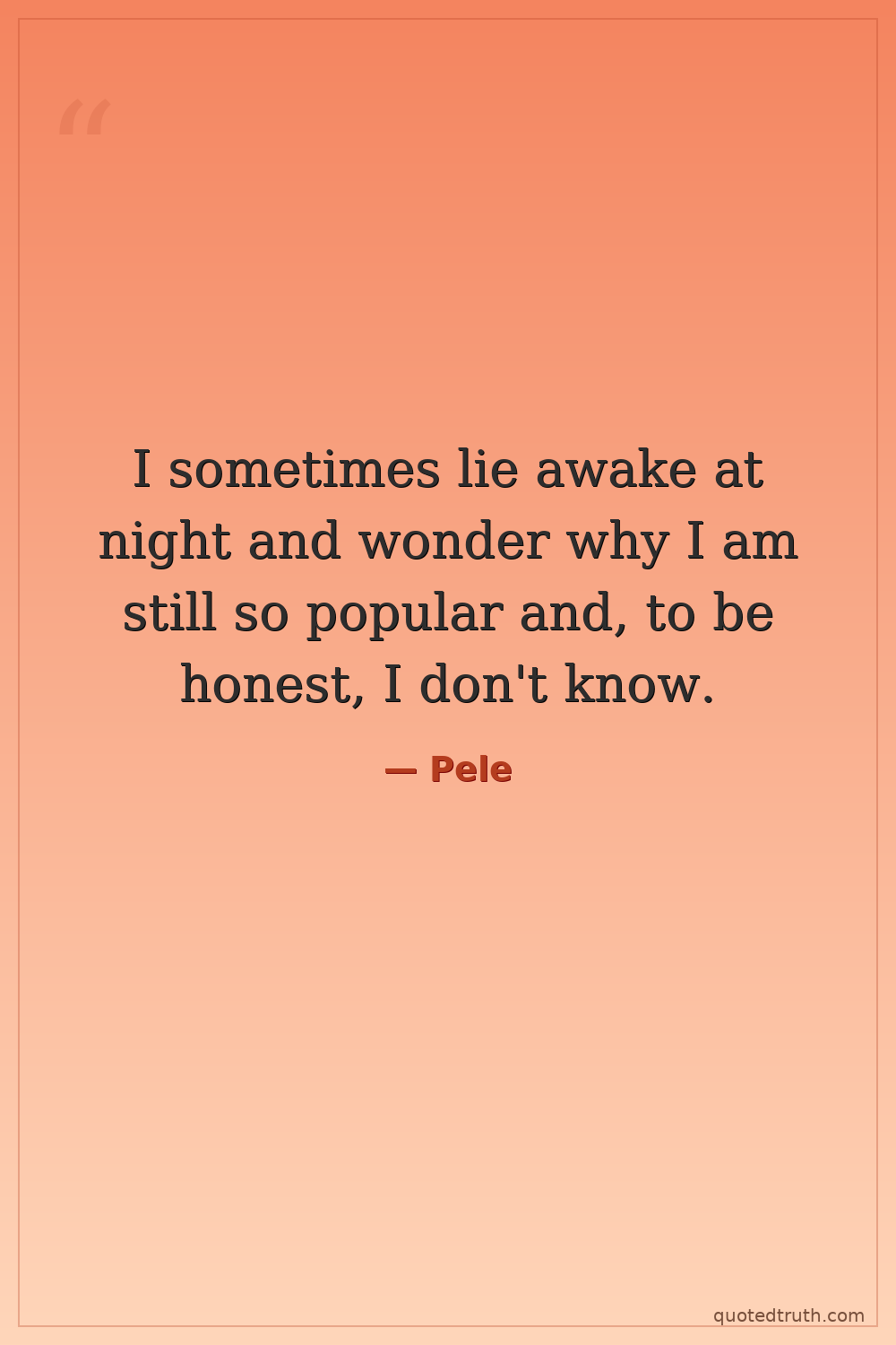 Humorous"Football is like a religion to me. I worship the ball, and I treat it like a god. Too many players think of a football as something to kick. They should be taught to caress it and to treat it like a p…"