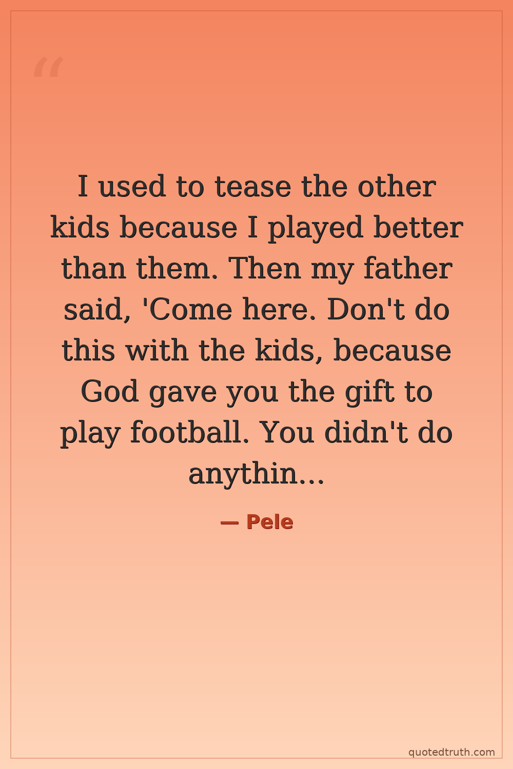 I used to tease the other kids because I played better than them. Then my father said, 'Come here. Don't do this with the kids, because God gave you the gift to play football. You didn't do anything. This was a present from God. You have to respect people, because it is important to be a good man, a good person. From now on, you must be this example.'