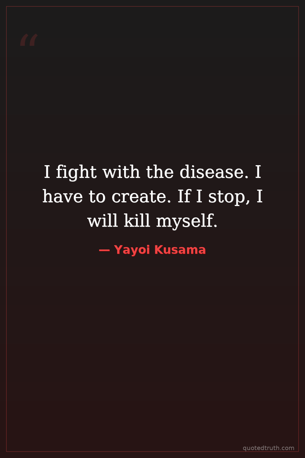 I fight with the disease. I have to create. If I stop, I will kill myself.