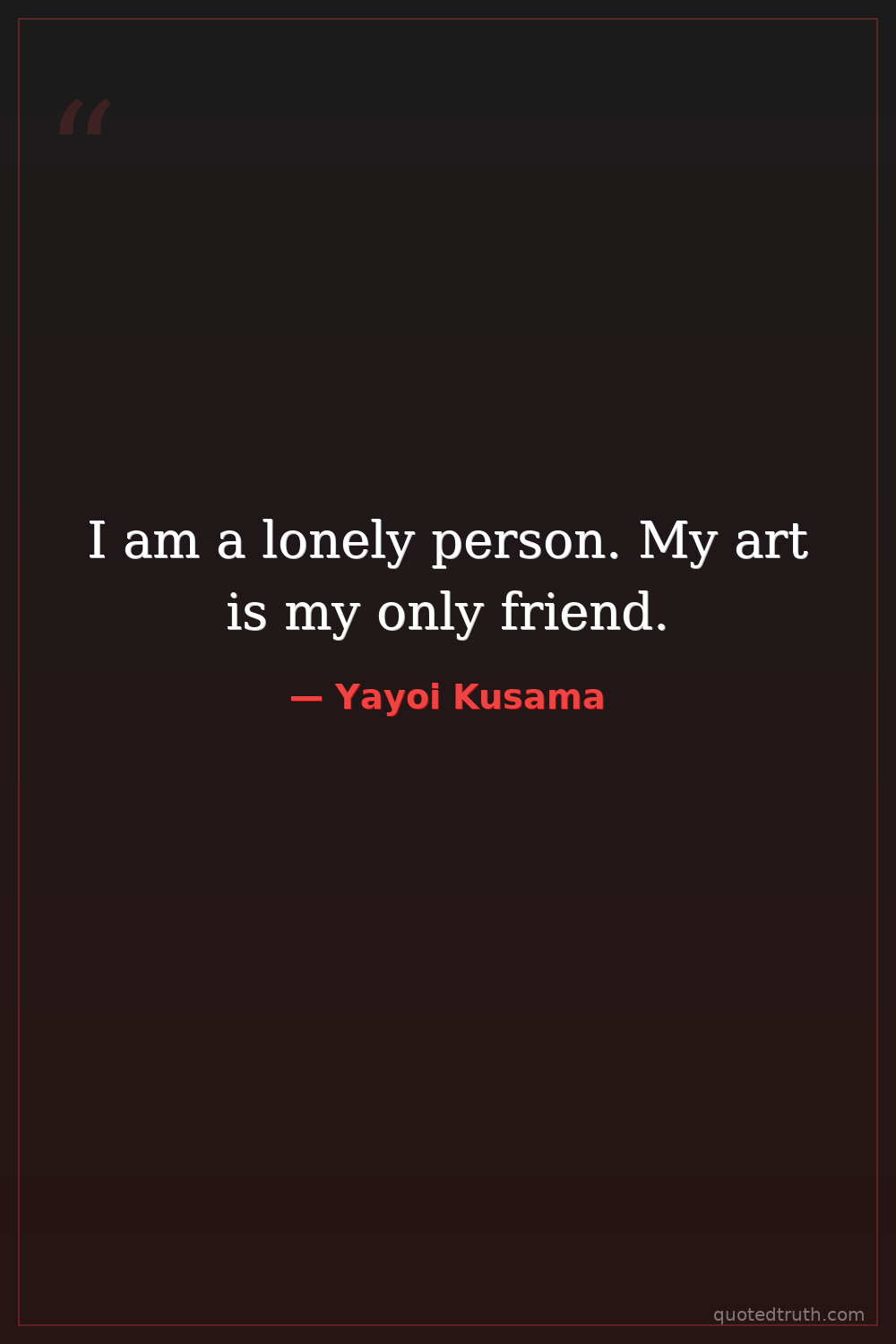 I am a lonely person. My art is my only friend.
