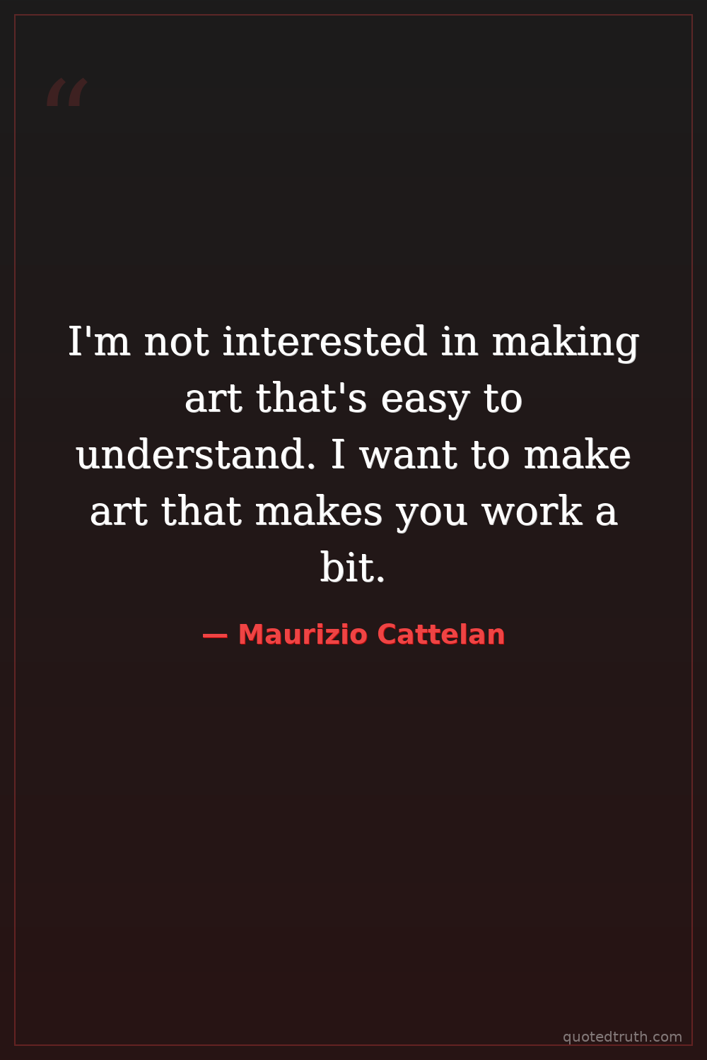I'm not interested in making art that's easy to understand. I want to make art that makes you work a bit.