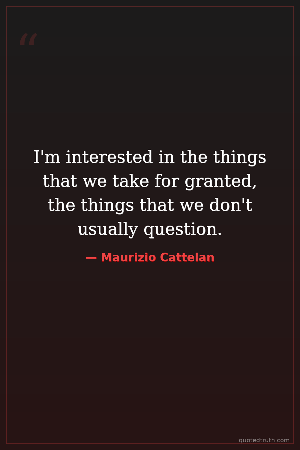 I'm interested in the things that we take for granted, the things that we don't usually question.
