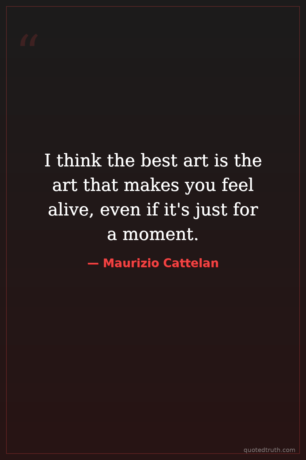 I think the best art is the art that makes you feel alive, even if it's just for a moment.