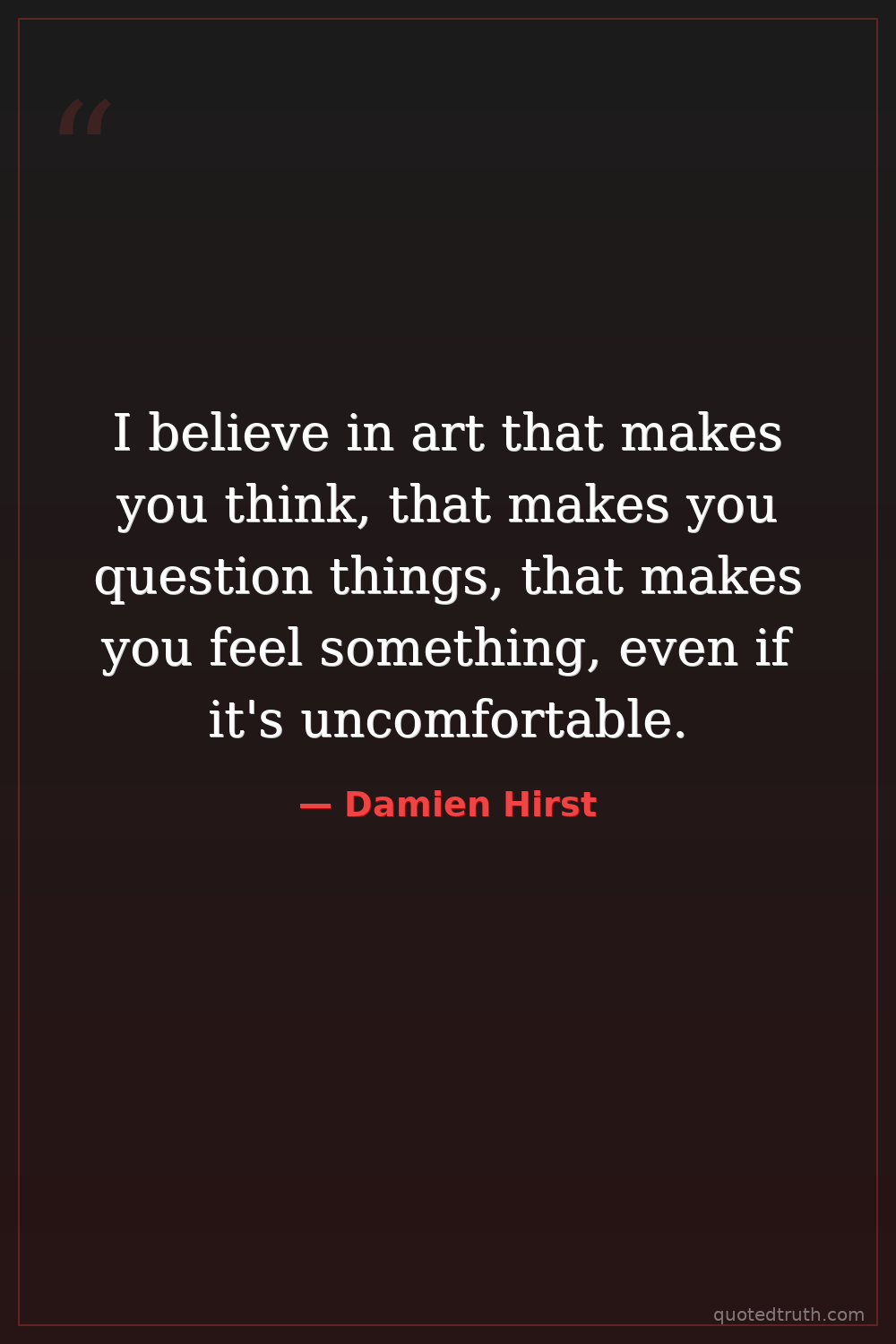 I believe in art that makes you think, that makes you question things, that makes you feel something, even if it's uncomfortable.