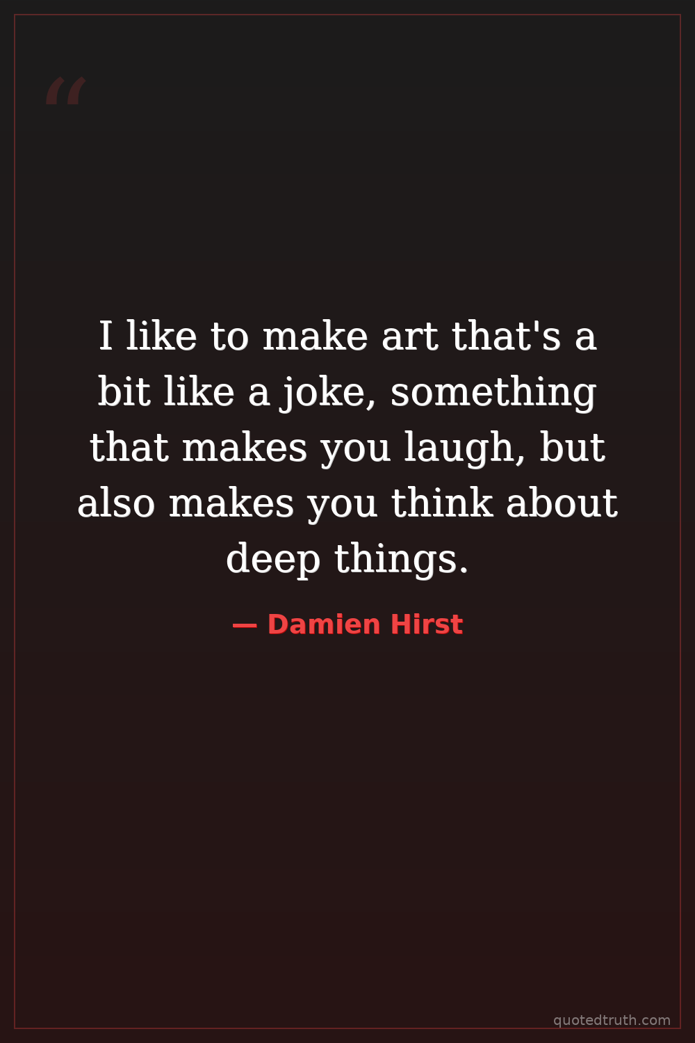 I like to make art that's a bit like a joke, something that makes you laugh, but also makes you think about deep things.