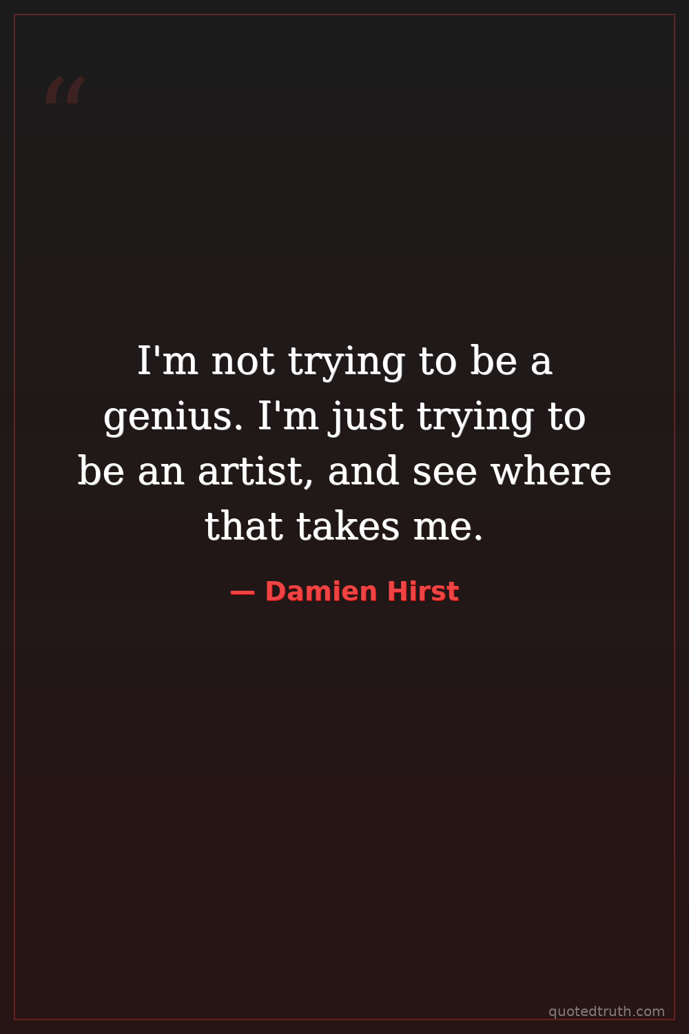 I'm not trying to be a genius. I'm just trying to be an artist, and see where that takes me.