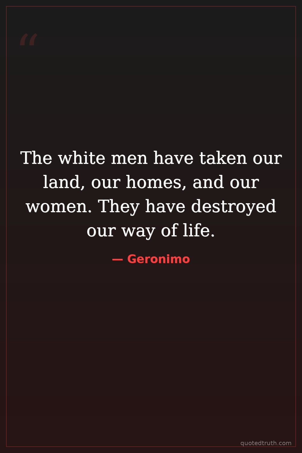 The white men have taken our land, our homes, and our women. They have destroyed our way of life.