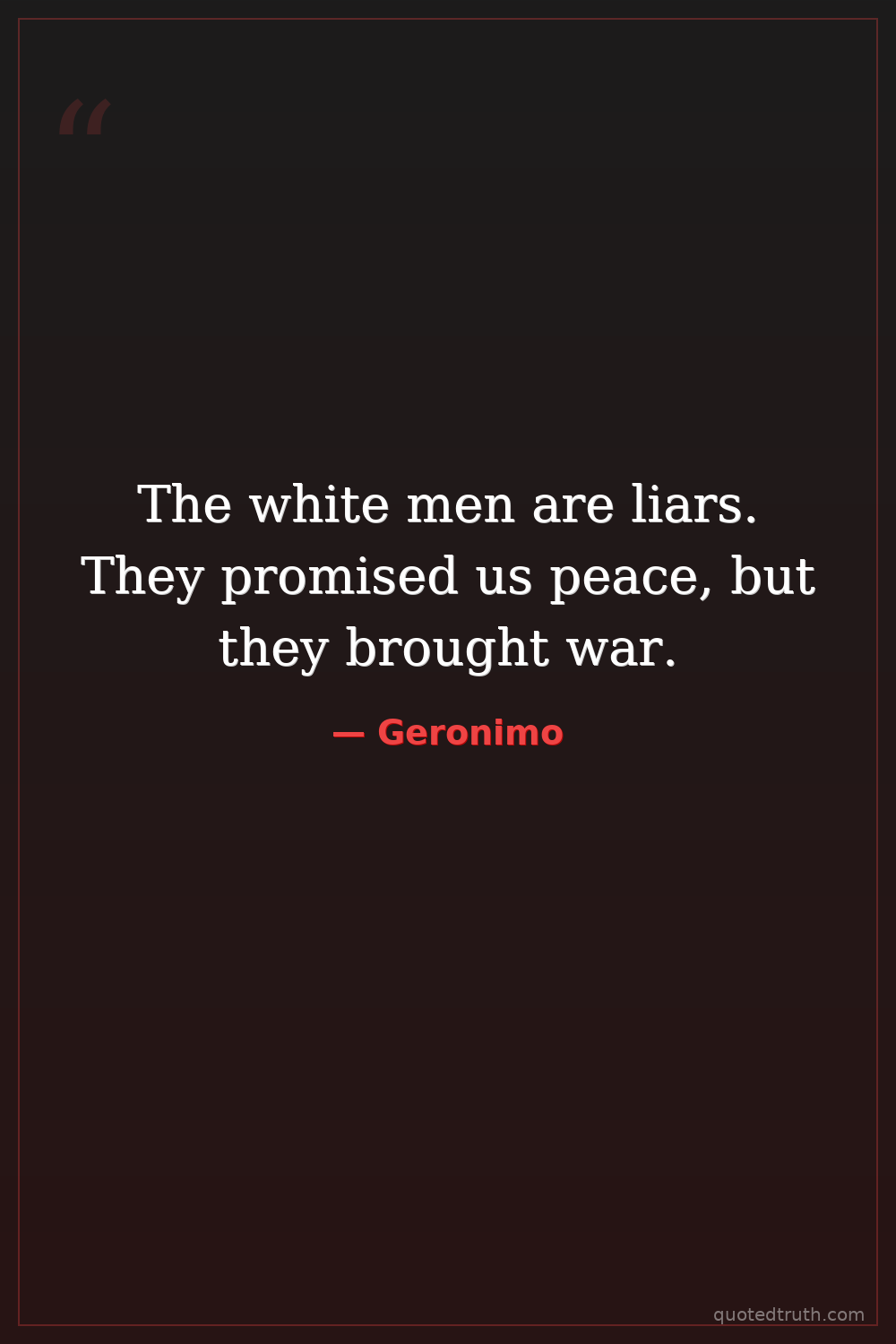 The white men are liars. They promised us peace, but they brought war.