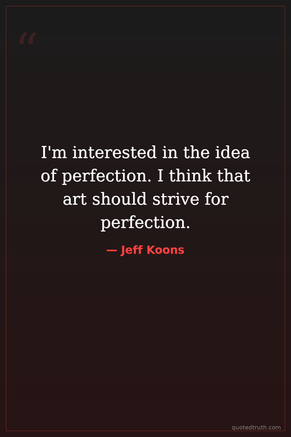 I'm interested in the idea of perfection. I think that art should strive for perfection.