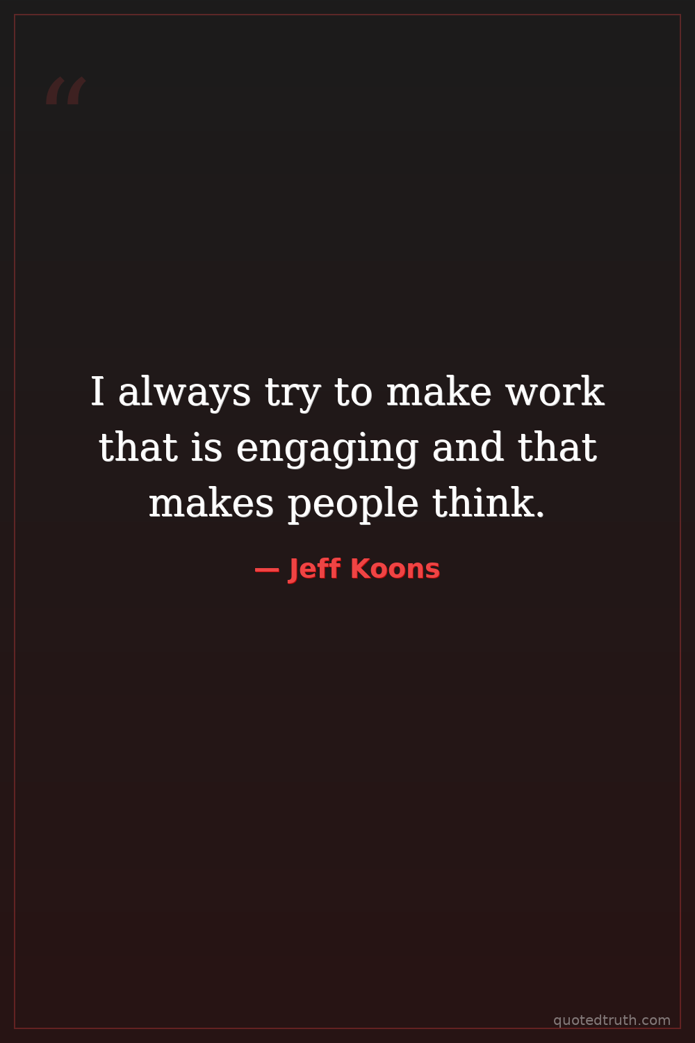 I always try to make work that is engaging and that makes people think.