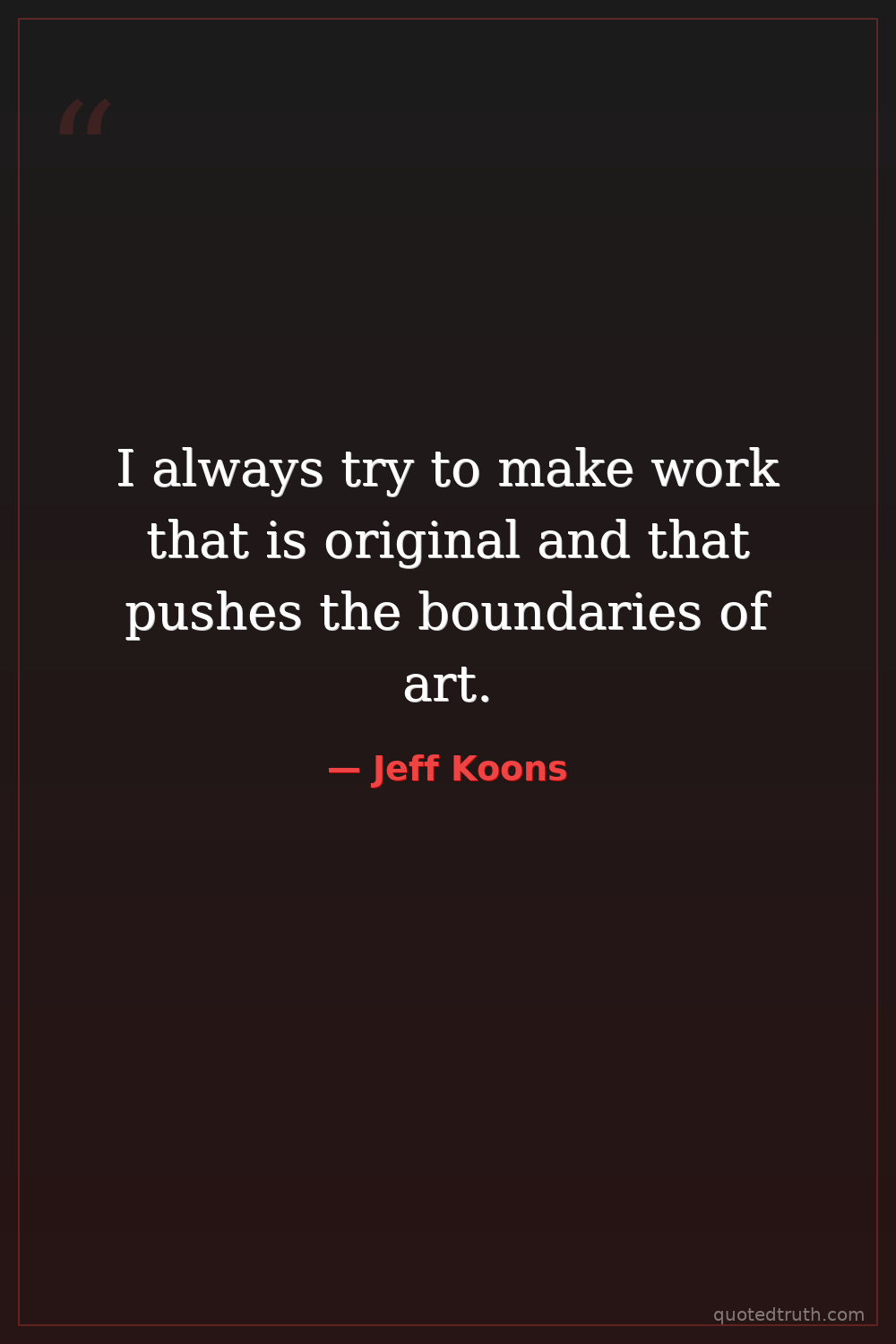 I always try to make work that is original and that pushes the boundaries of art.