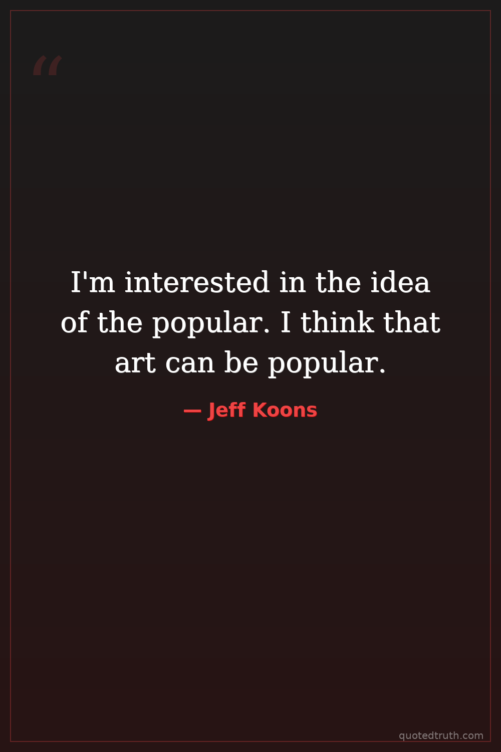 I'm interested in the idea of the popular. I think that art can be popular.