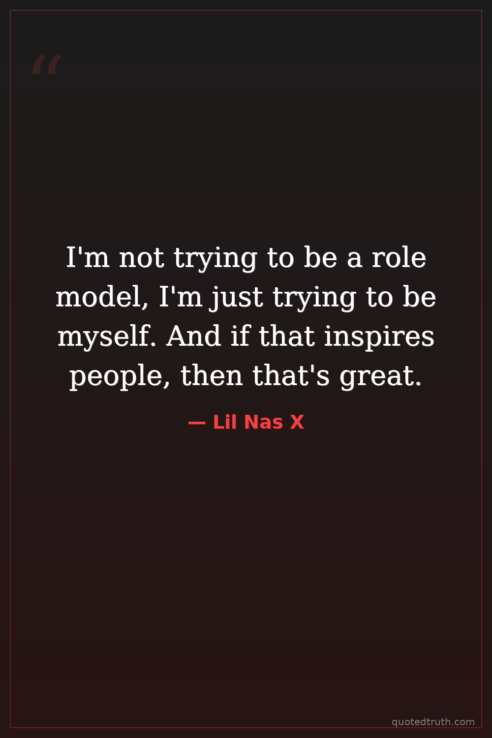 I'm not trying to be a role model, I'm just trying to be myself. And if that inspires people, then that's great.