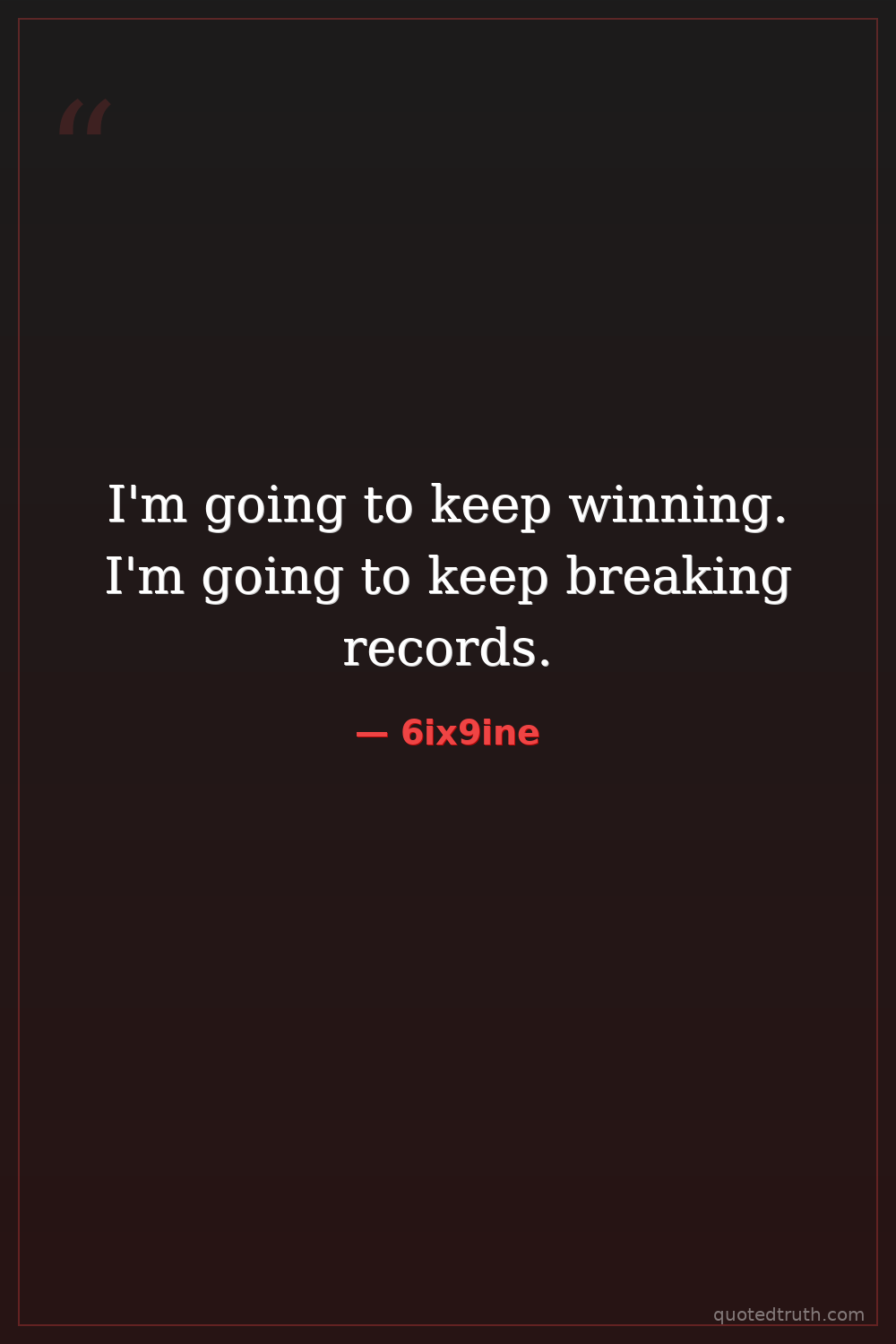I'm going to keep winning. I'm going to keep breaking records.
