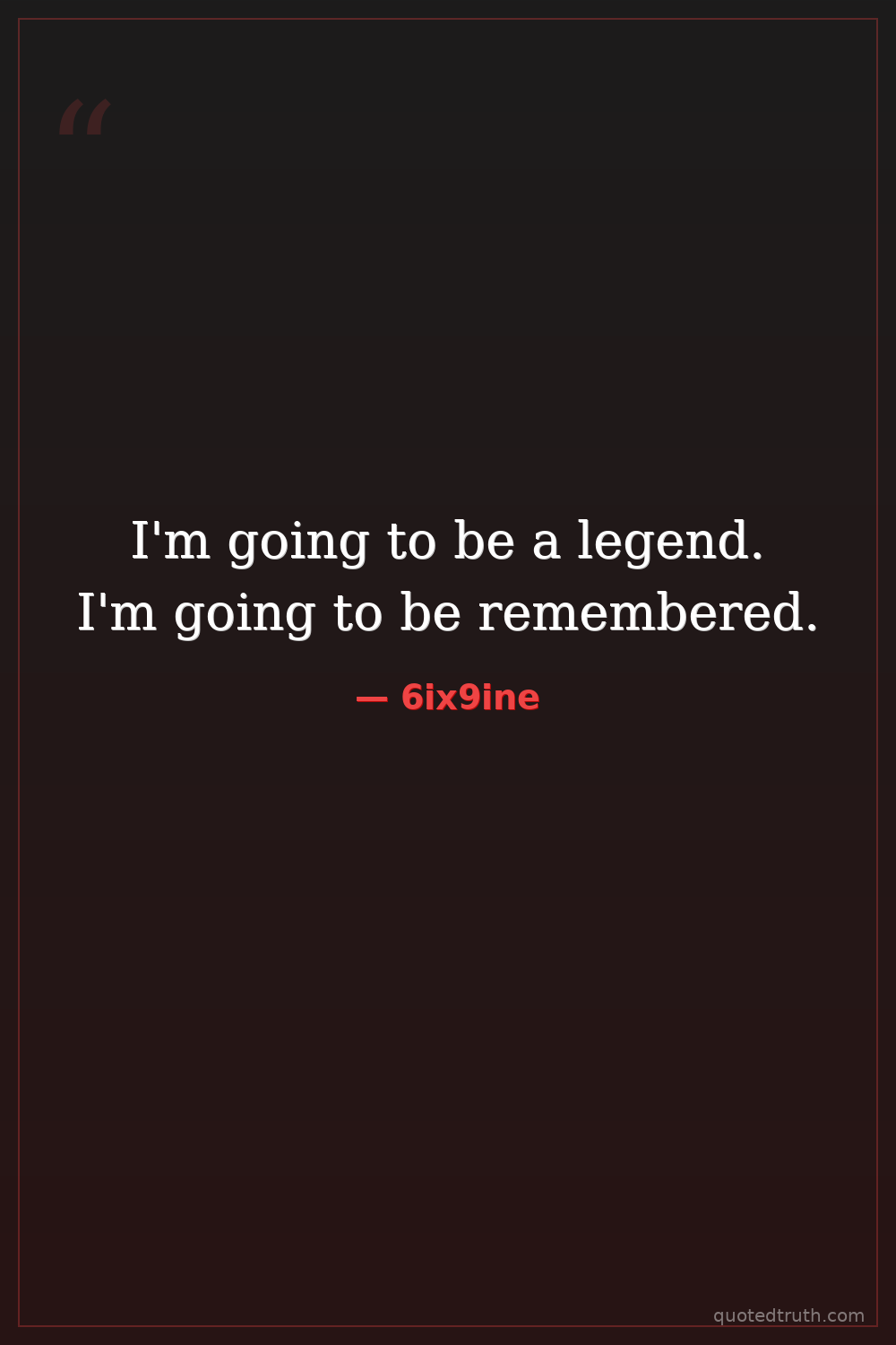 I'm going to be a legend. I'm going to be remembered.