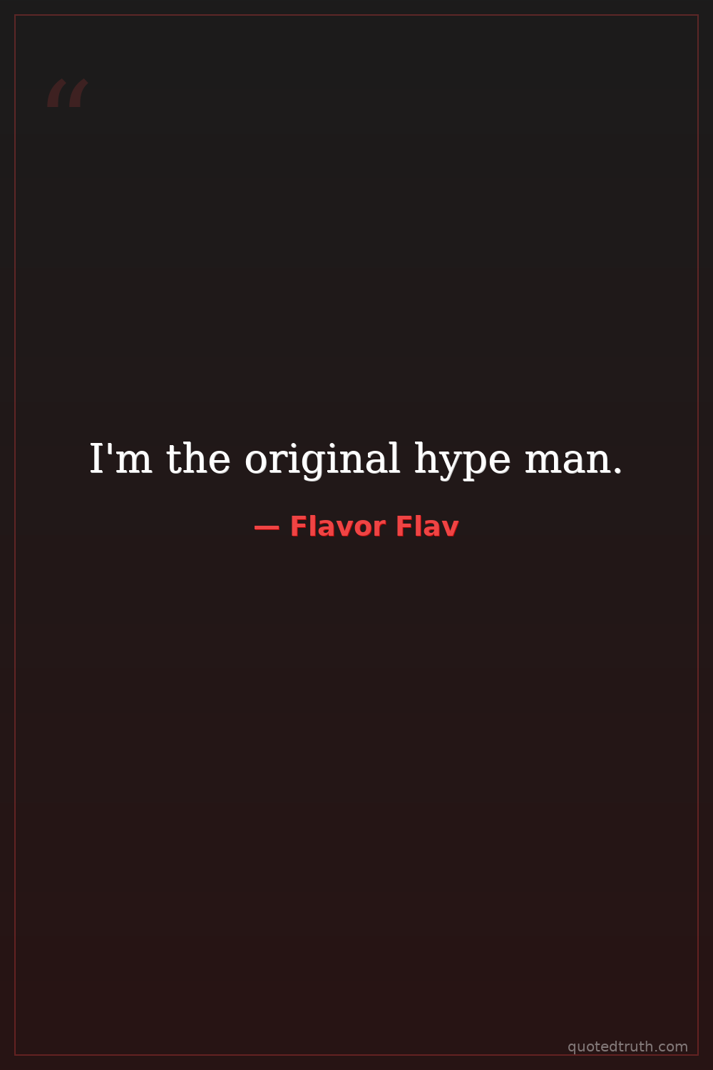Humorous"Well let me tell you something, I can't be nobody but myself. Ya know what I'm saying? The thing that makes the world love Flav is Flav being himself. So honestly man, to tell you the truth: it was no…"