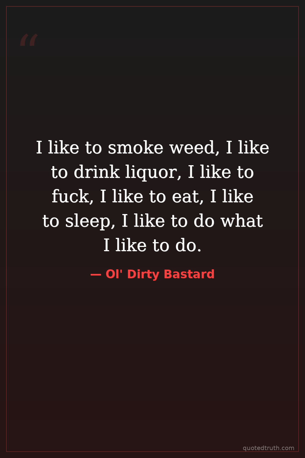 I like to smoke weed, I like to drink liquor, I like to fuck, I like to eat, I like to sleep, I like to do what I like to do.
