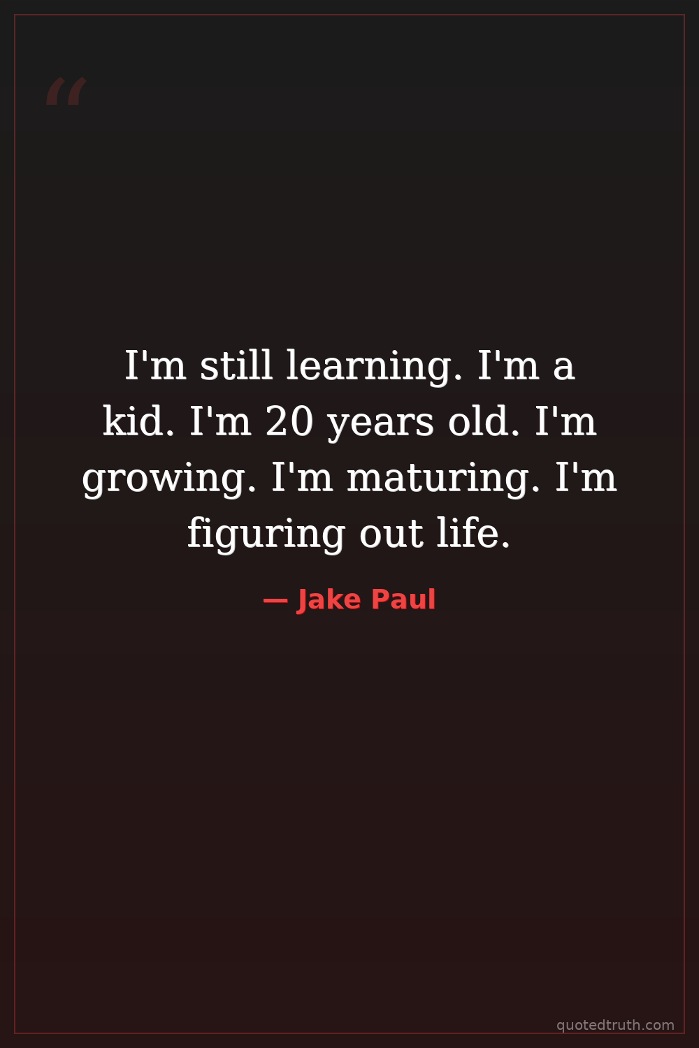 I'm still learning. I'm a kid. I'm 20 years old. I'm growing. I'm maturing. I'm figuring out life.