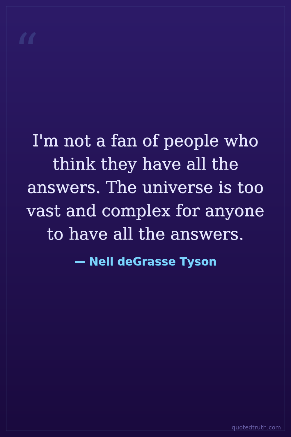 I'm not a fan of people who think they have all the answers. The universe is too vast and complex for anyone to have all the answers.