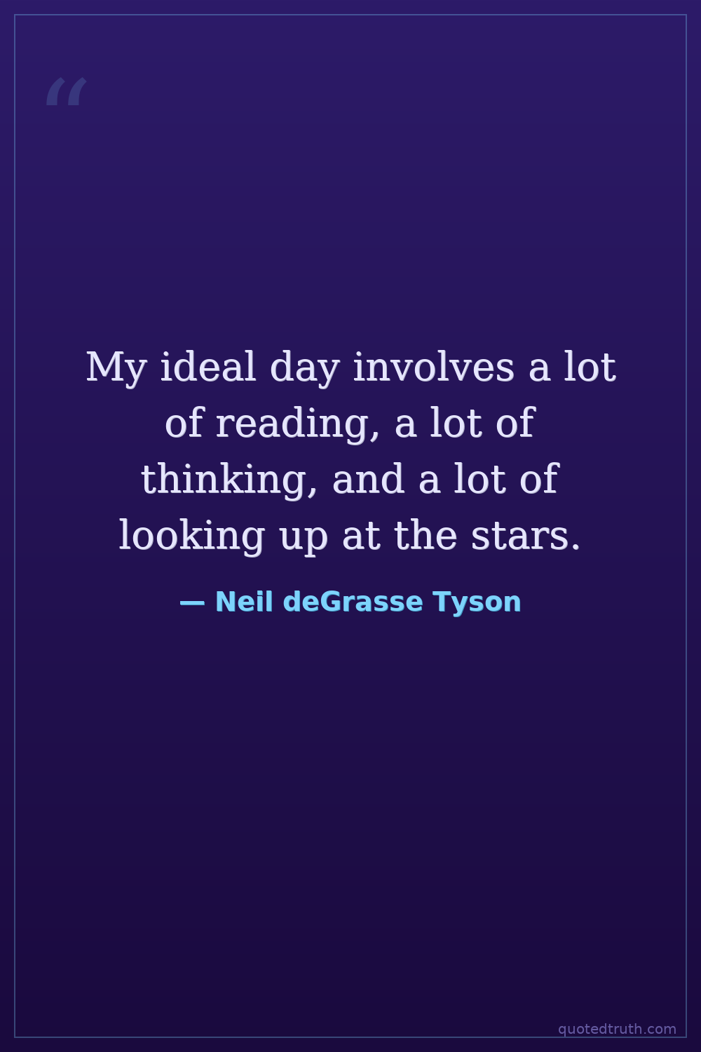 My ideal day involves a lot of reading, a lot of thinking, and a lot of looking up at the stars.