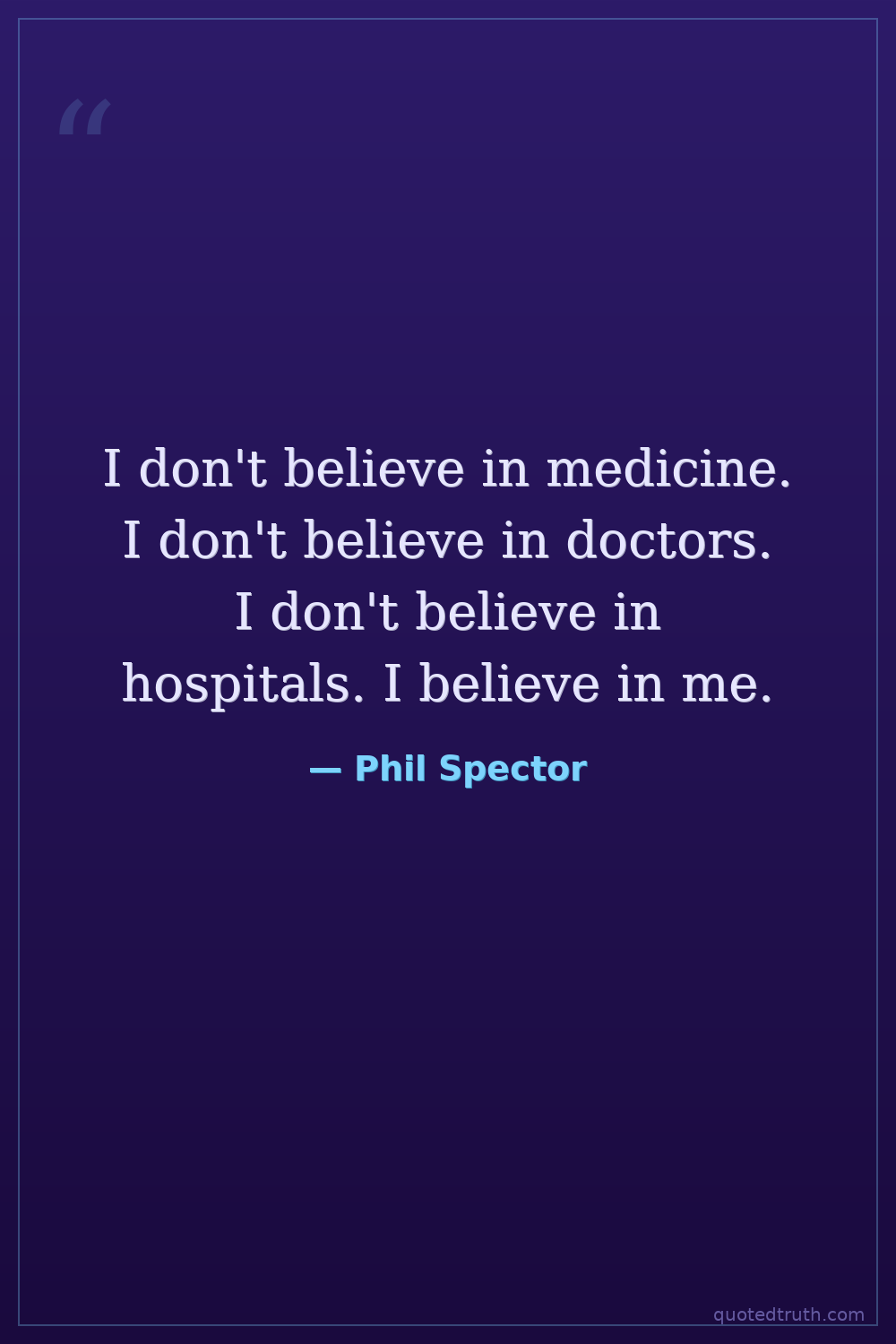 I don't believe in medicine. I don't believe in doctors. I don't believe in hospitals. I believe in me.