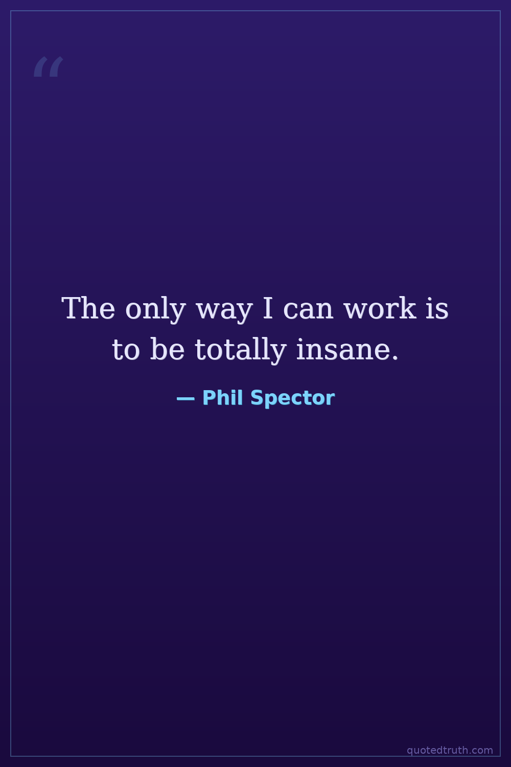 The only way I can work is to be totally insane.