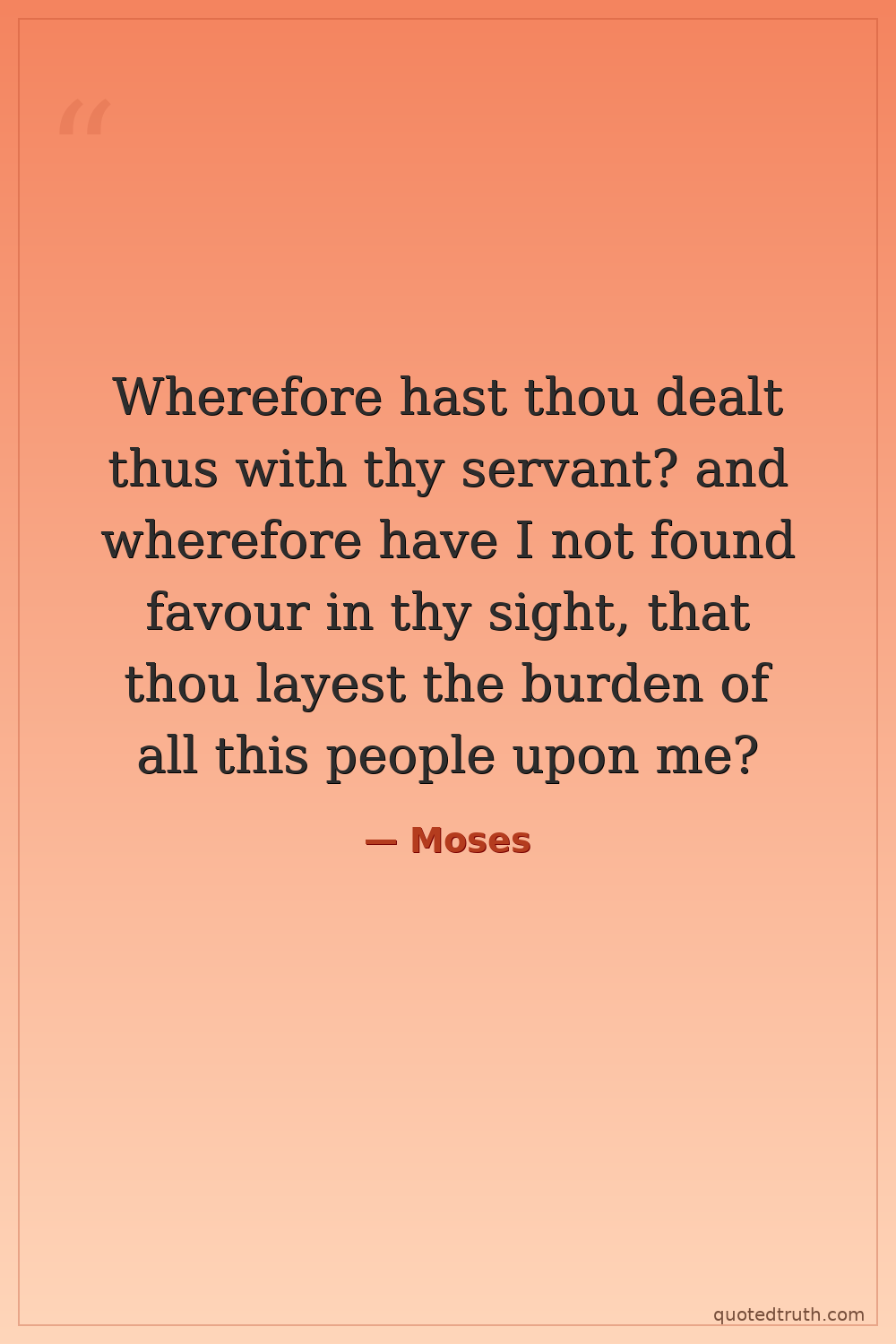 Wherefore hast thou dealt thus with thy servant? and wherefore have I not found favour in thy sight, that thou layest the burden of all this people upon me?
