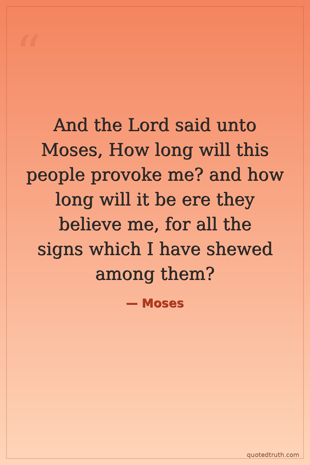And the Lord said unto Moses, How long will this people provoke me? and how long will it be ere they believe me, for all the signs which I have shewed among them?